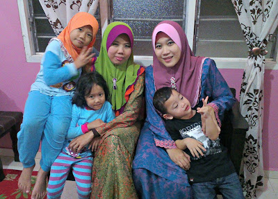 Balik dari rumah Oat, Maghrib sekejap dekat BP Mall, lepas tu terus pergi rumah Kak Sally. Dah kata kan tadi tema berhari raya rumah bff, bff terbabit kenalah memasak untuk aku sebagai tanda kasih sayang yang tak berbelah bahagi. Perut aku ni six packs. Tempat nak simpan makanan memang banyak. Tadi dah makan mee goreng tak puas - puas lagi. Sampai rumah Kak Sally makan pulak mee sup udang. Bersila terus tak pandang kiri kanan. Kak Sally ada 2 orang anak perempuan comel - comel. Dua - dua aku dah cop jadi menantu.